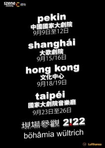 Se presenta en el Royal Albert Hall de Londres, Sidney Ópera House, Edinburg Festival, Düsseldorfer Schauspielhaus, Spoleto Festival, Radio City Music Hall de New York, Festival de La Valleta, Festival d’Avignon, Grand Theatre National de Pekin, Teatro Colón de Buenos Aires, Ópera de Roma, Palácio de Bellas Artes de Mexico, Théâtre de Champs Elyseés de Paris, Opera de Amazonas, Festival Grec.
